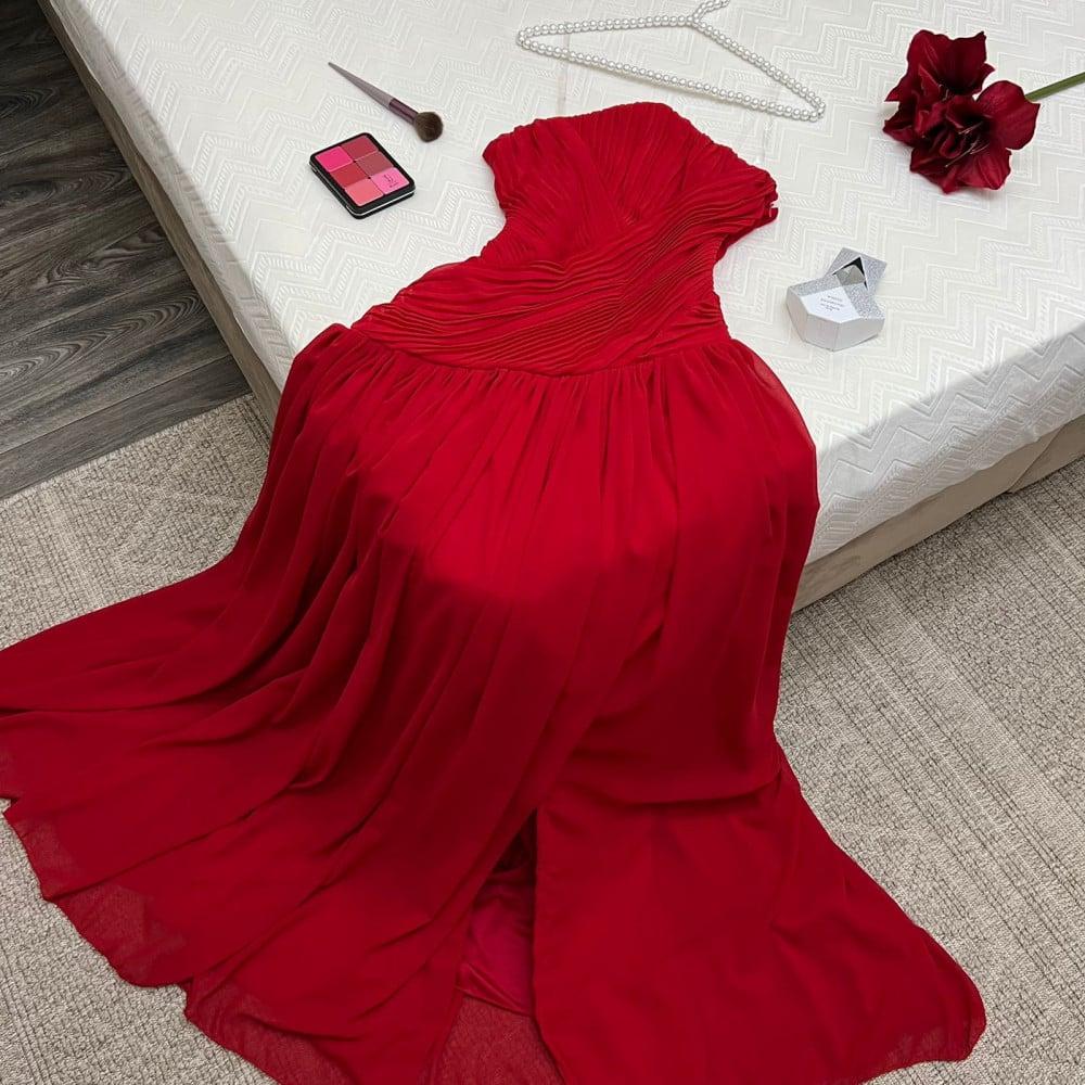 فستان احمر بكسرات