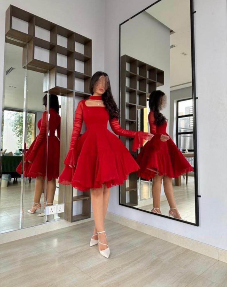 فستان احمر ناعم ميدي