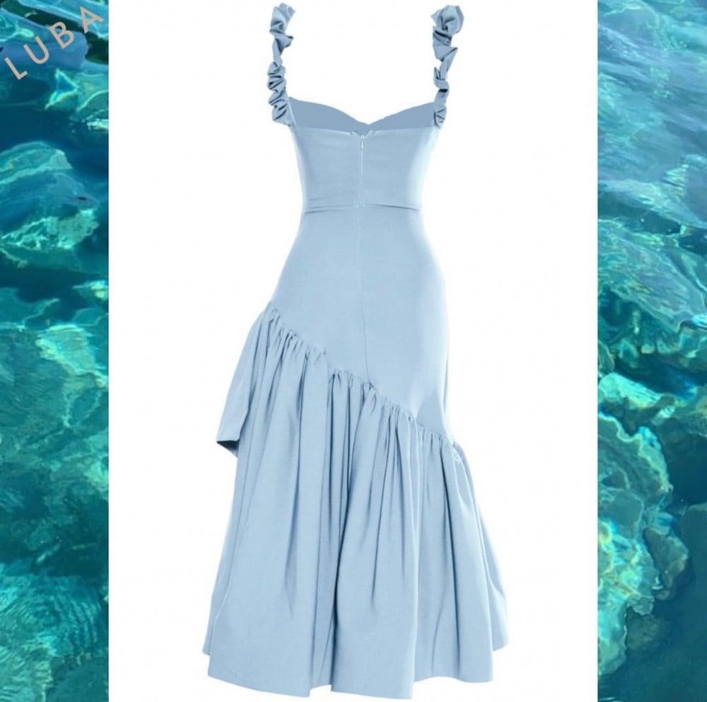 فستان سماوي سترتش ناعم ميد بكسرات مميزه