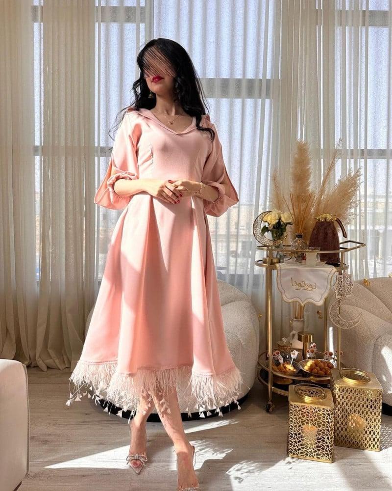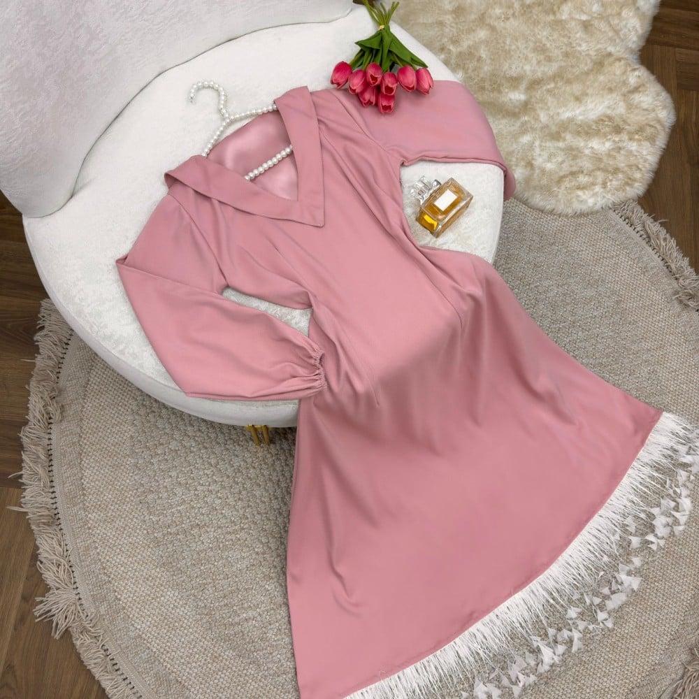 فستان تفته مع ريش ناعم وانيق