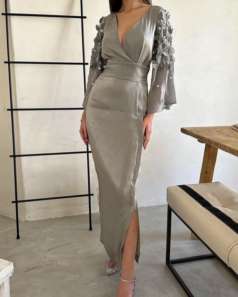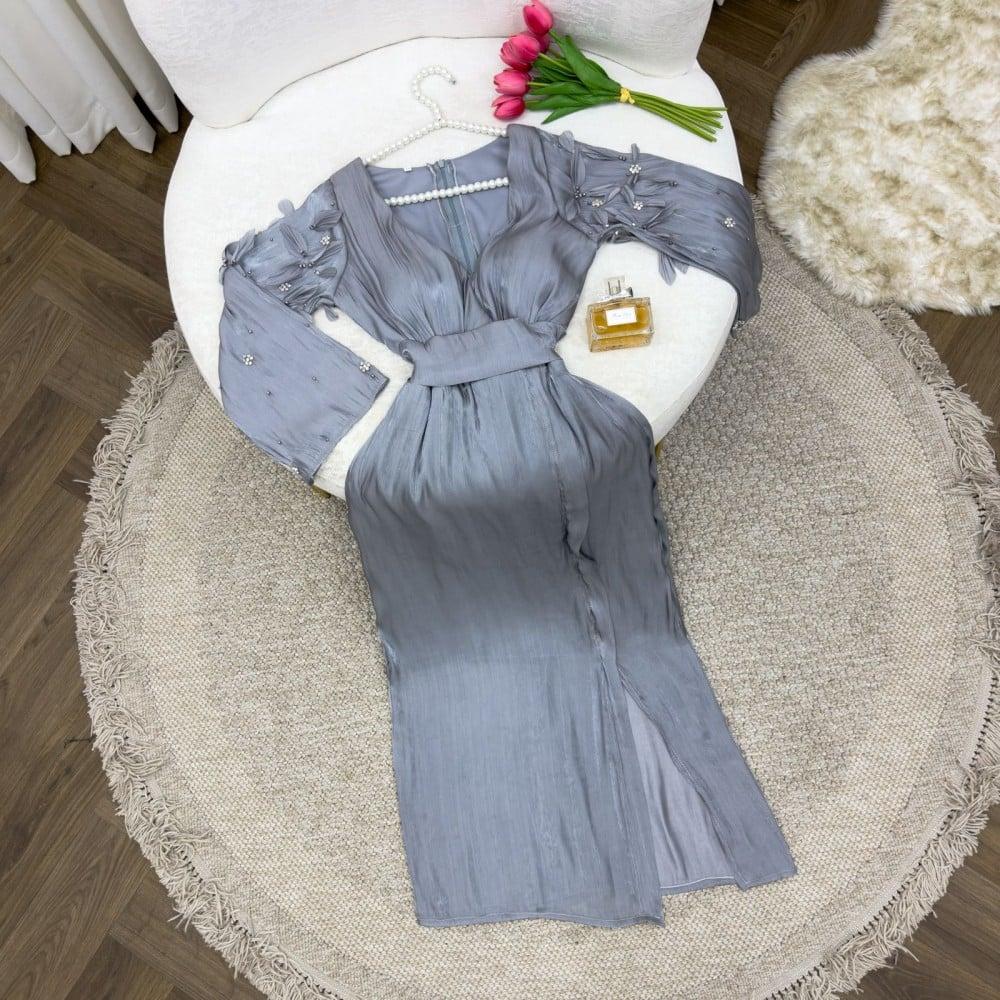 فستان مناسب للعيد بخامة الحرير و الكرنكل مطرز