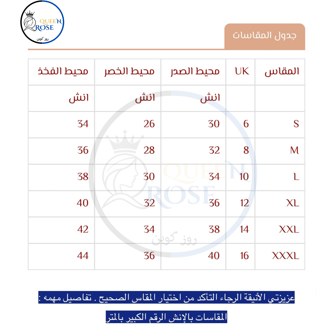 ملاحظة ( مقاسات هذا التصميم ضيقة نرجو مراجعة جدول المقاسات قبل الطلب )