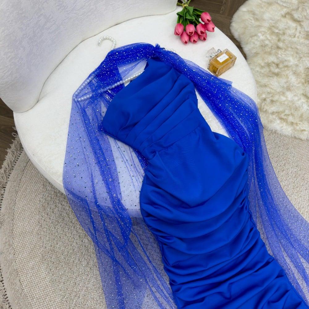 فستان تكسير ماشك مع وشاح ازرق